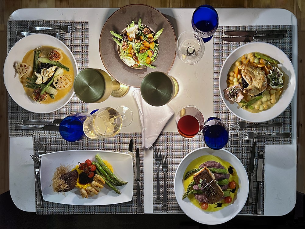 Caper Fondant, Baby Greens, Asparagus Essence, Caviar, Pastry Crisps